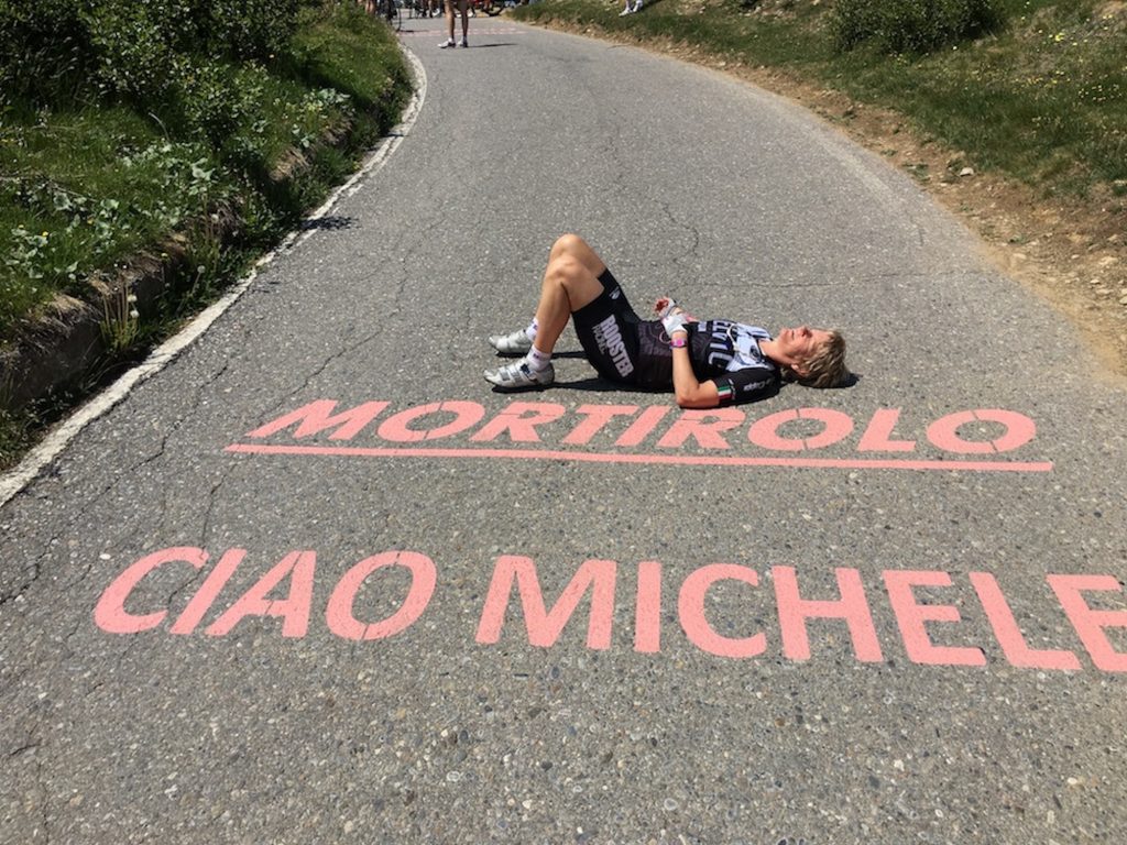 EDIT: In June of 2017, Jennifer Sage had a chance to ride the Mortirolo while on a bike tour in the Italian Alpes. In her words: The Mortirolo is the hardest climb I’ve ever done! We also did the Stelvio (23 km with 48 switchbacks), the Bernina (40 km 25 mi!), and the Gavia. But it was the Mortirolo that will inhabit my brain with memories of unrelenting suffering—the “easy parts” were 10%! It was also very hot on that day, making it even harder. But a challenge like this also means there’s a tremendous feeling of satisfaction and pride having accomplished it. Note to anyone considering it: train harder than you think you’ll need to! I didn’t train enough…